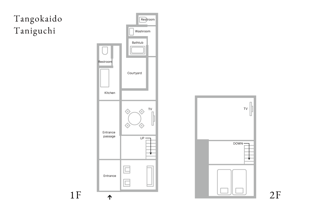 “Taniguchi” is a renovated 90-year-old townhouse built along the old Tango Kaido road that is part of Obama's history. The earthen floor leading from the entrance, and the courtyard viewed from the porch, provide a comfortable atmosphere of the old days. On the second floor, there is a Japanese-style room with two adjoining rooms, and when the fusuma (sliding door) is opened, the room becomes a large space. The room can accommodate up to 8 people, making it a good choice for large groups. Please use this spacious room as your home away from home.